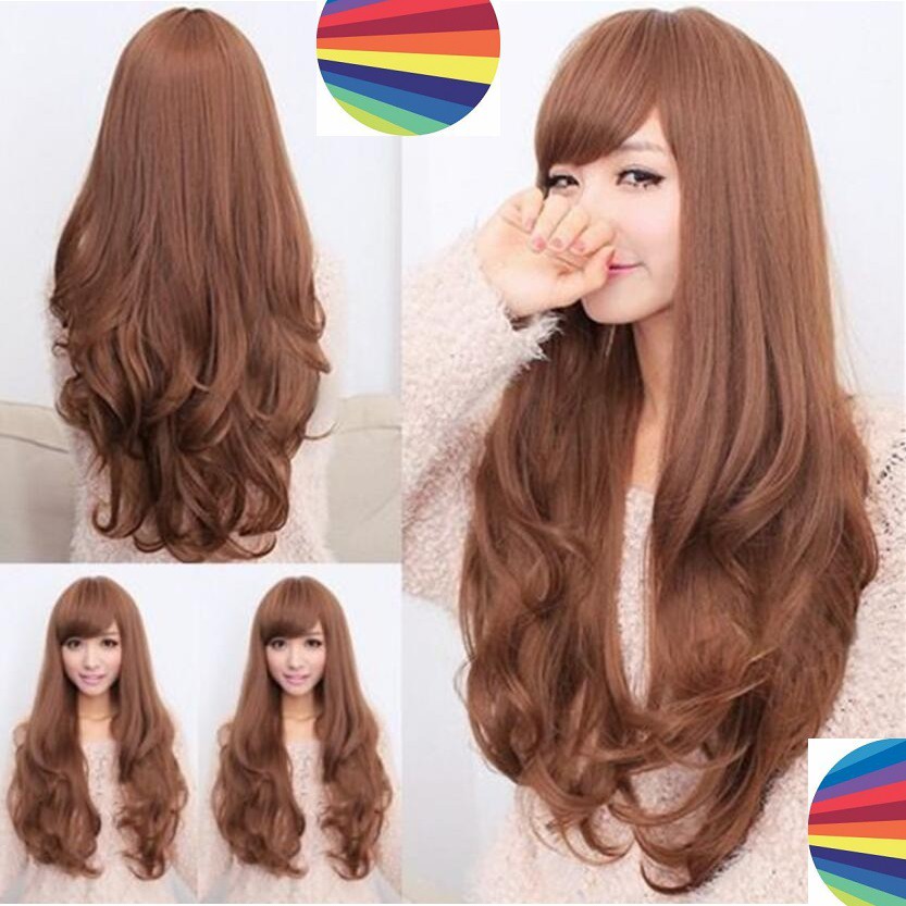 68cm Wig Coklat Tua Untuk Perempuan Wanita Ikal Gelombang Panjang Rambut Poni Palsu Tipis Gaya Rambut Wig Realistis Set Tutup Kepala Penuh Eropa Amerika Fluffy Lazada Indonesia