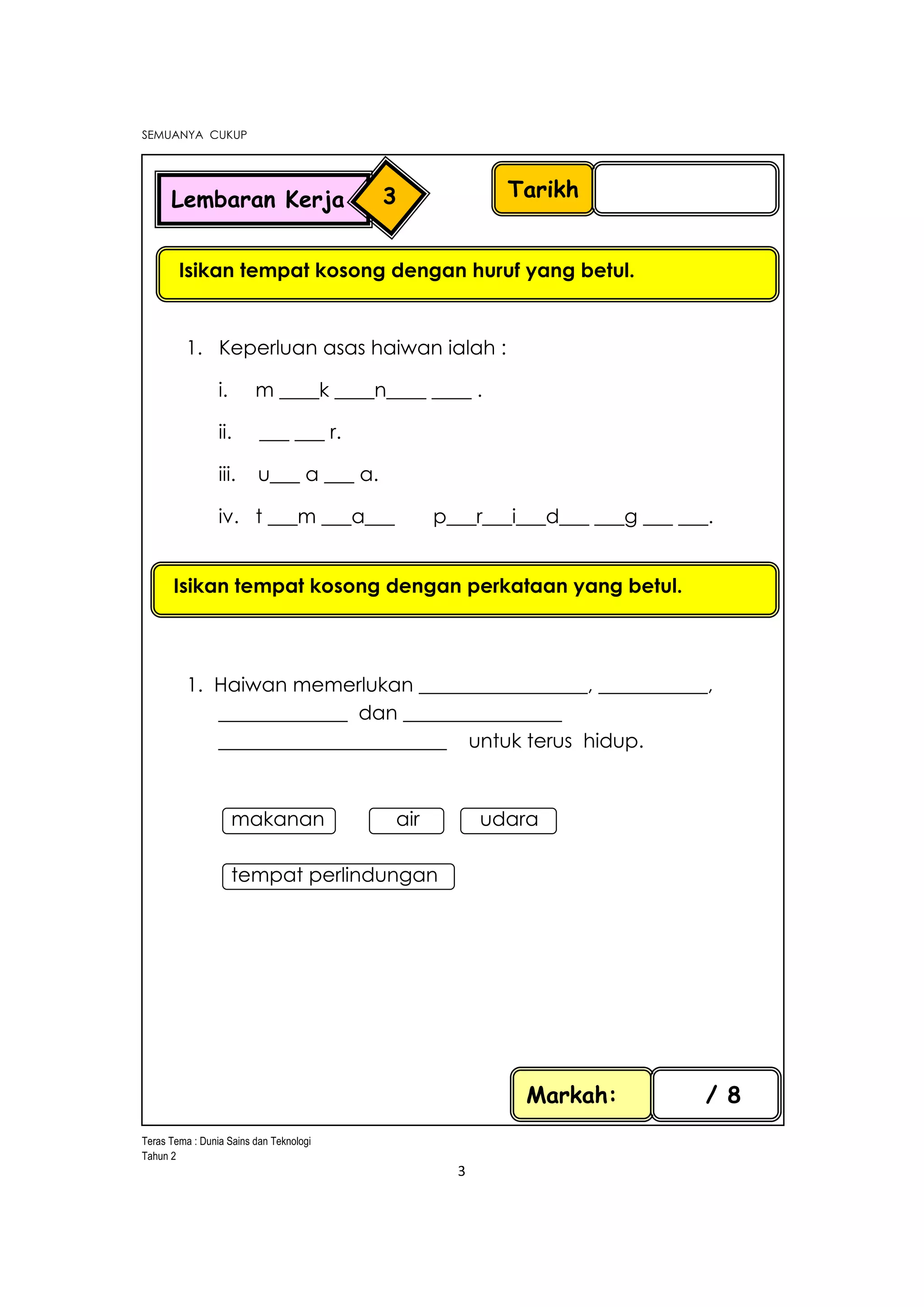 Dunia Sains Dan Teknologi Tahun 2 Lembaran Kerja