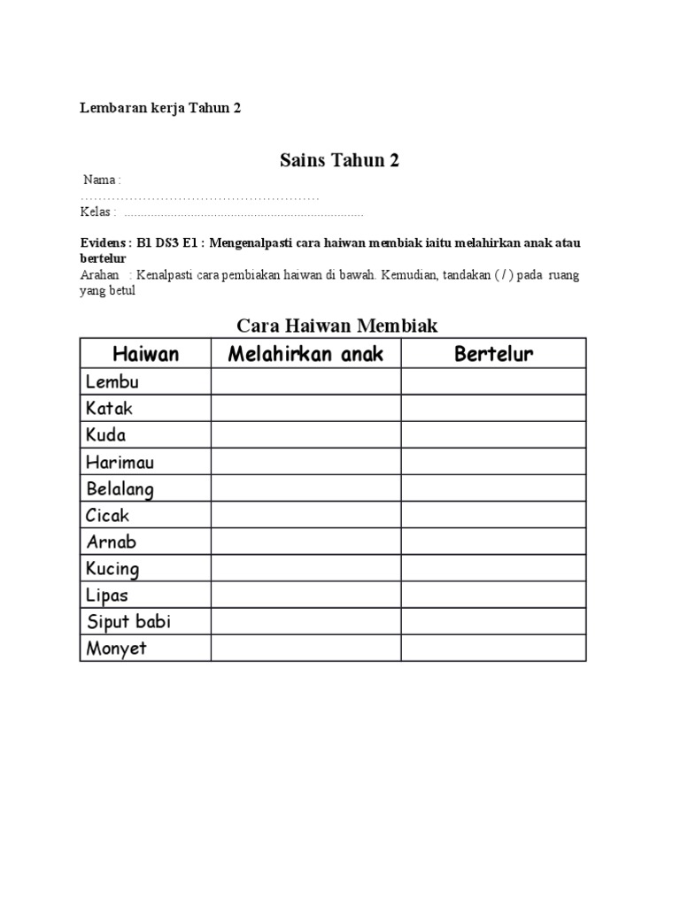 Lembaran Kerja Sains Tahun 2 Awal Tahun Penilaian Membalik Buku Halaman 1 8 Anyflip